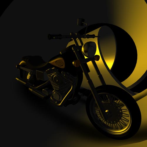 Composition actually very simple, the work included creation of a background and illumination. From a background it was required, that it was effective enough, deep and did not shade a motorcycle. After that there was a problem more difficultly - illumination. I did not use any system, and simply selected color and type of illumination is direct on the screen, yet have not reached that was pleasant to me. Three sources of illumination have sufficed me, below I bring result of my diligence.